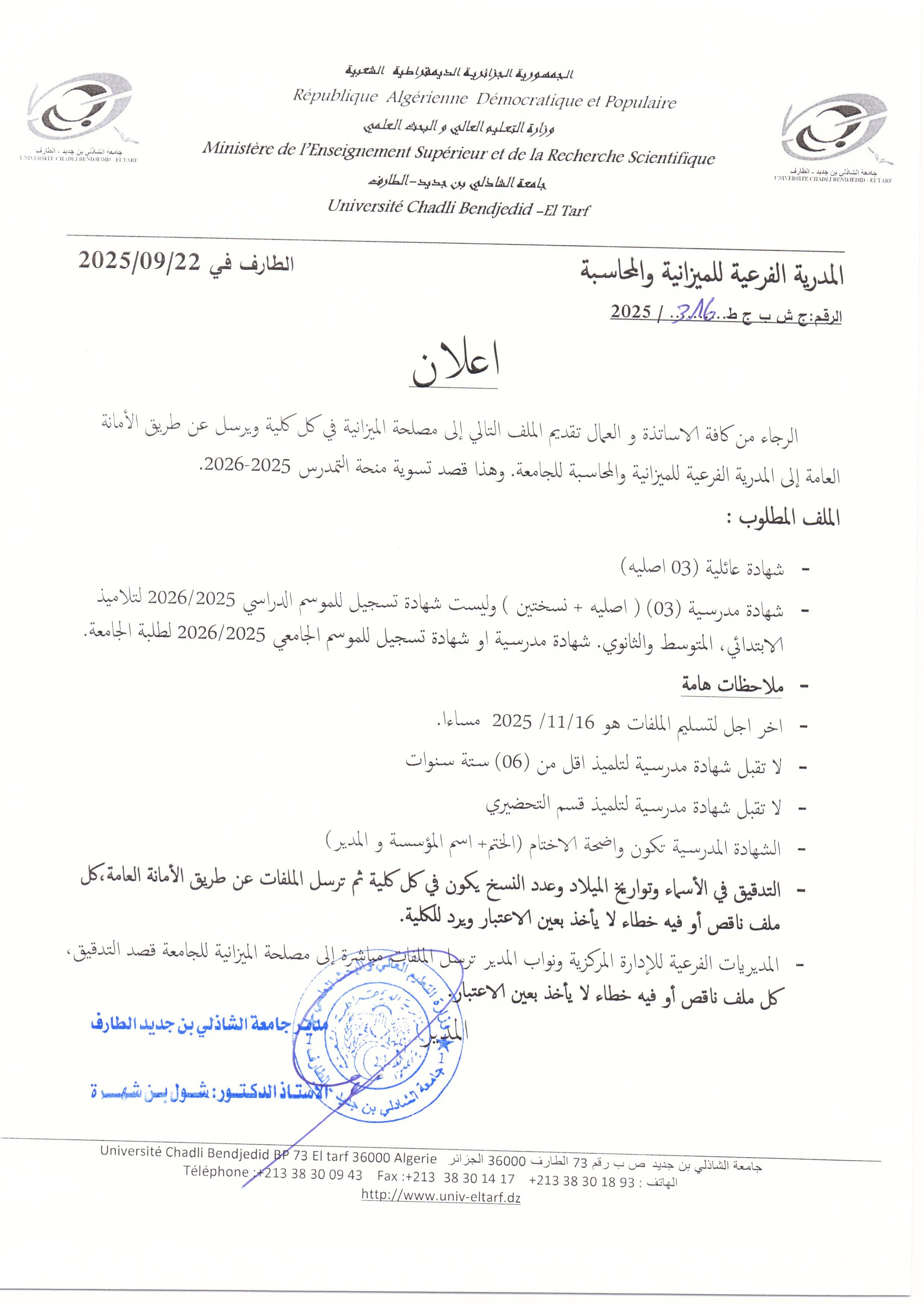 - الإيمايلcontact@univ-eltarf.dzOpens in your application