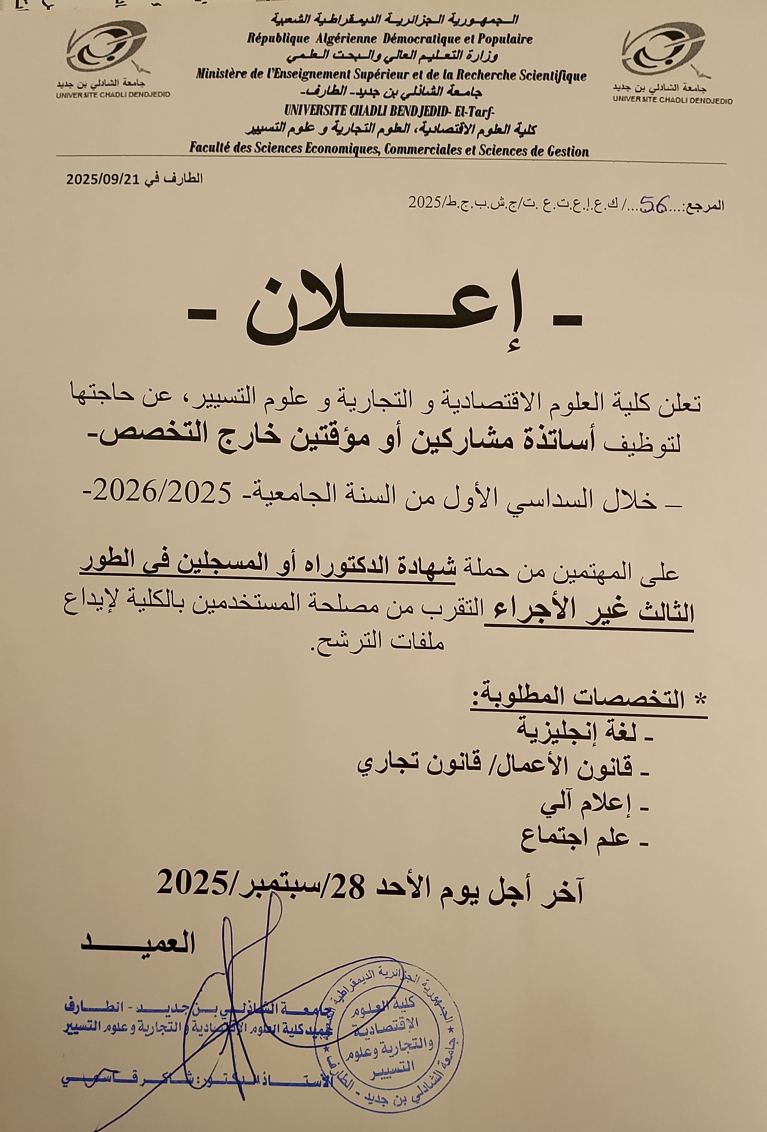 - الإيمايلcontact@univ-eltarf.dzOpens in your application
