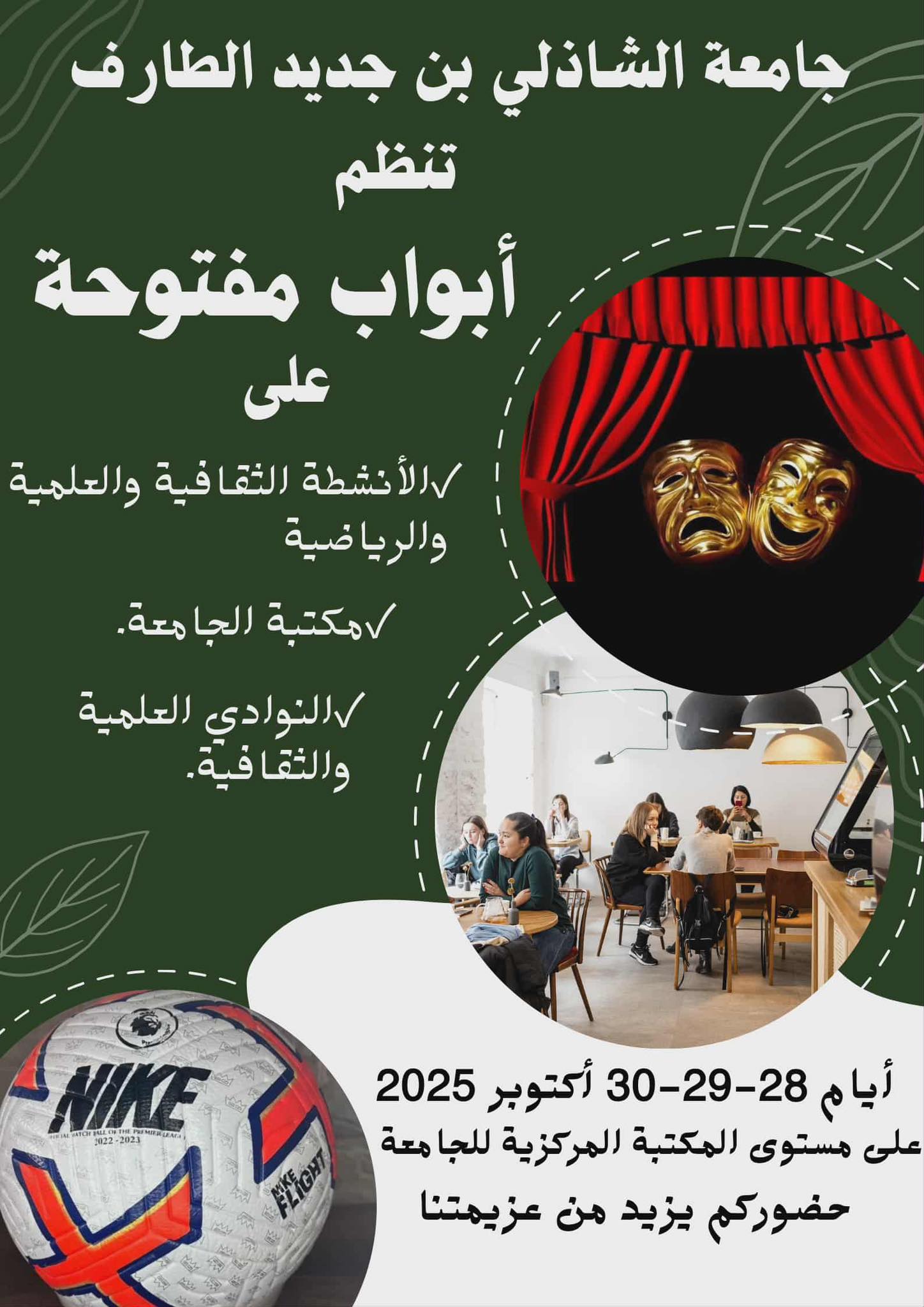 تم اليوم على مستوى المكتبة المركزية للجامعة إفتتاح الأبواب المفتوحة على: مختلف الأنشطة الثقافية والعلمية والرياضية✓المكتبة المركزية للجامعة✓النوادي العلمية والثقافية✓ شهد اليوم الاول إقبال كبير للطلبة حيث تم: