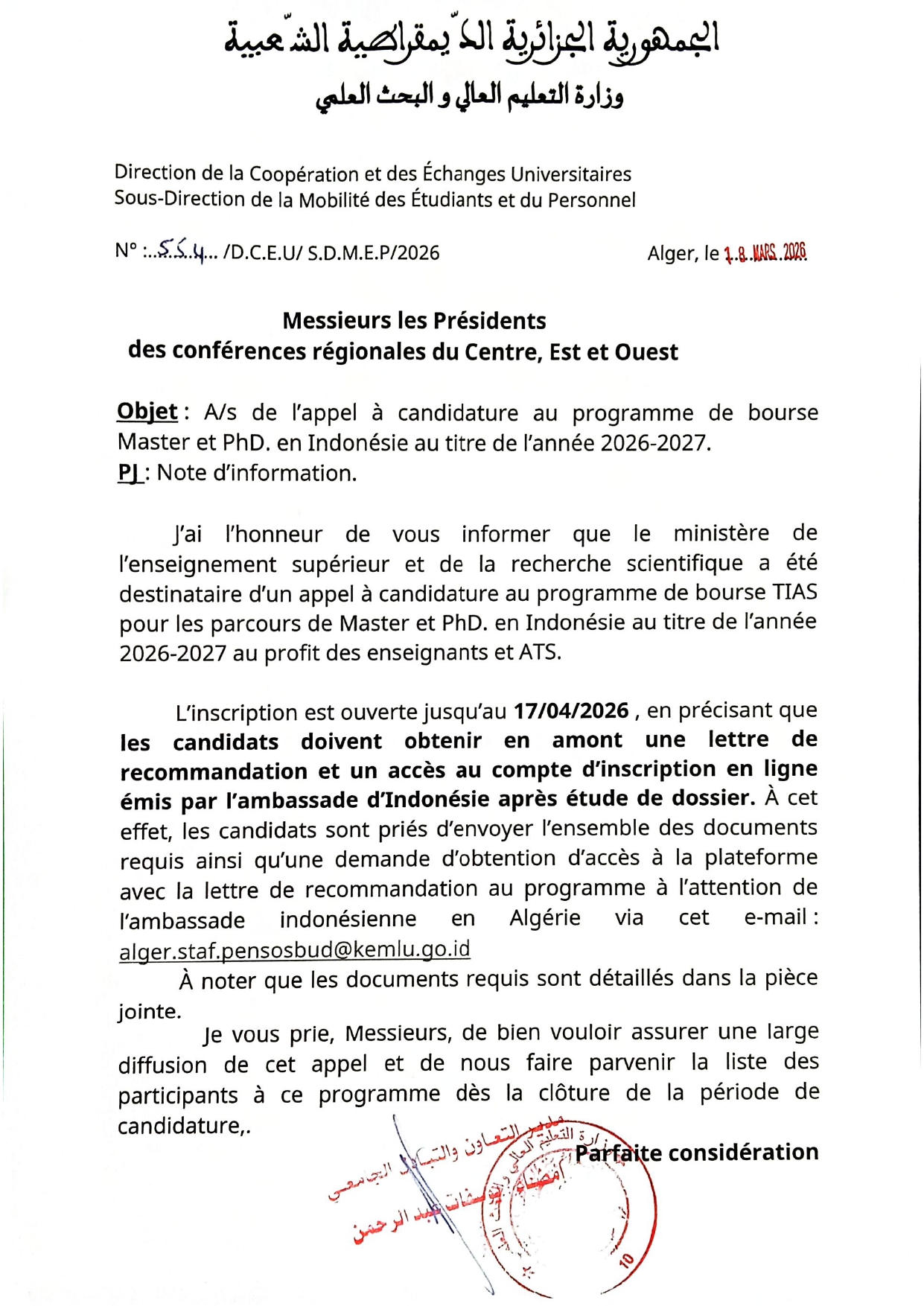 Bourse d’Indonésie TIAS Post author:dalel Post published:25 مارس، 2026 Post category:اعلان اساتذة / اعلان الموظفين / اعلانات الطلبة Post comments:0 Comments Booklet-TIAS-intake-2026_compressed-4تنزيل You Might Also Like The 2nd National Conference on Artificial Intelligence and Information Technologies (NCAIIT’25) 4 مايو، 2025 إعلان للترشح لانتخاب ممثلي الاساتذة في المجلس التأديبي للجامعة 24 نوفمبر، 2024 مسابقة علمية بين طلبة قسم الكيمياء و قسم الفيزياء 25 أبريل، 2024 اترك تعليقاً إلغاء الردCommentEnter your name or username to comment Enter your email address to comment Enter your website URL (optional) احفظ اسمي، بريدي الإلكتروني، والموقع الإلكتروني في هذا المتصفح لاستخدامها المرة المقبلة في تعليقي.