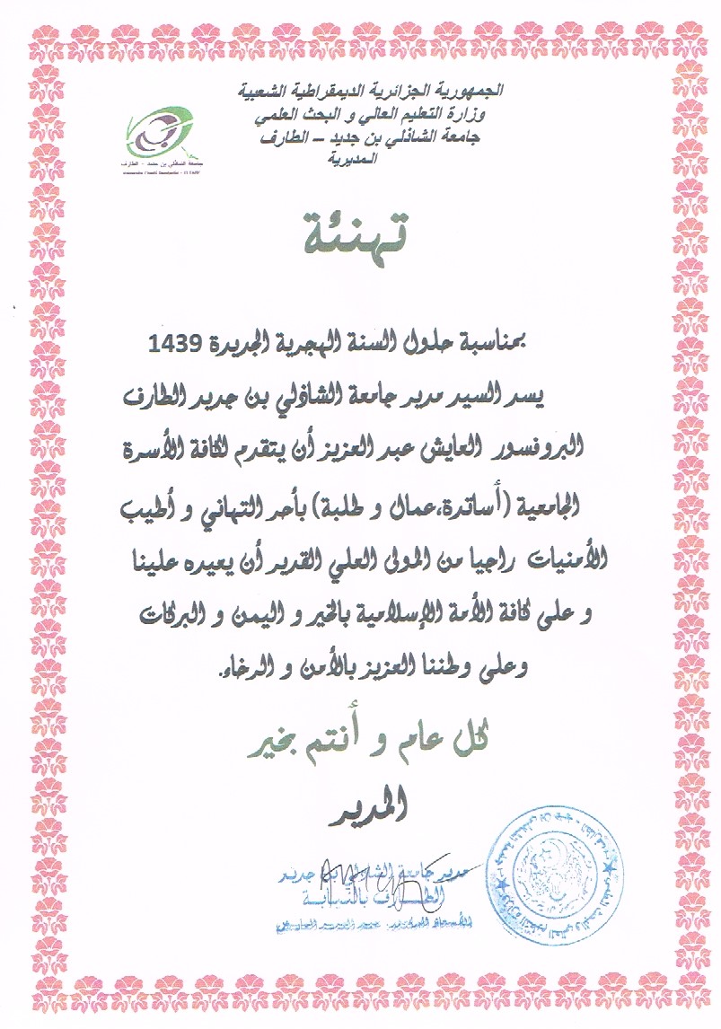 أبواب مفتوحة على التكوين في الطور الثالث - دكتوراه ل م د يوم 2017/09/19
