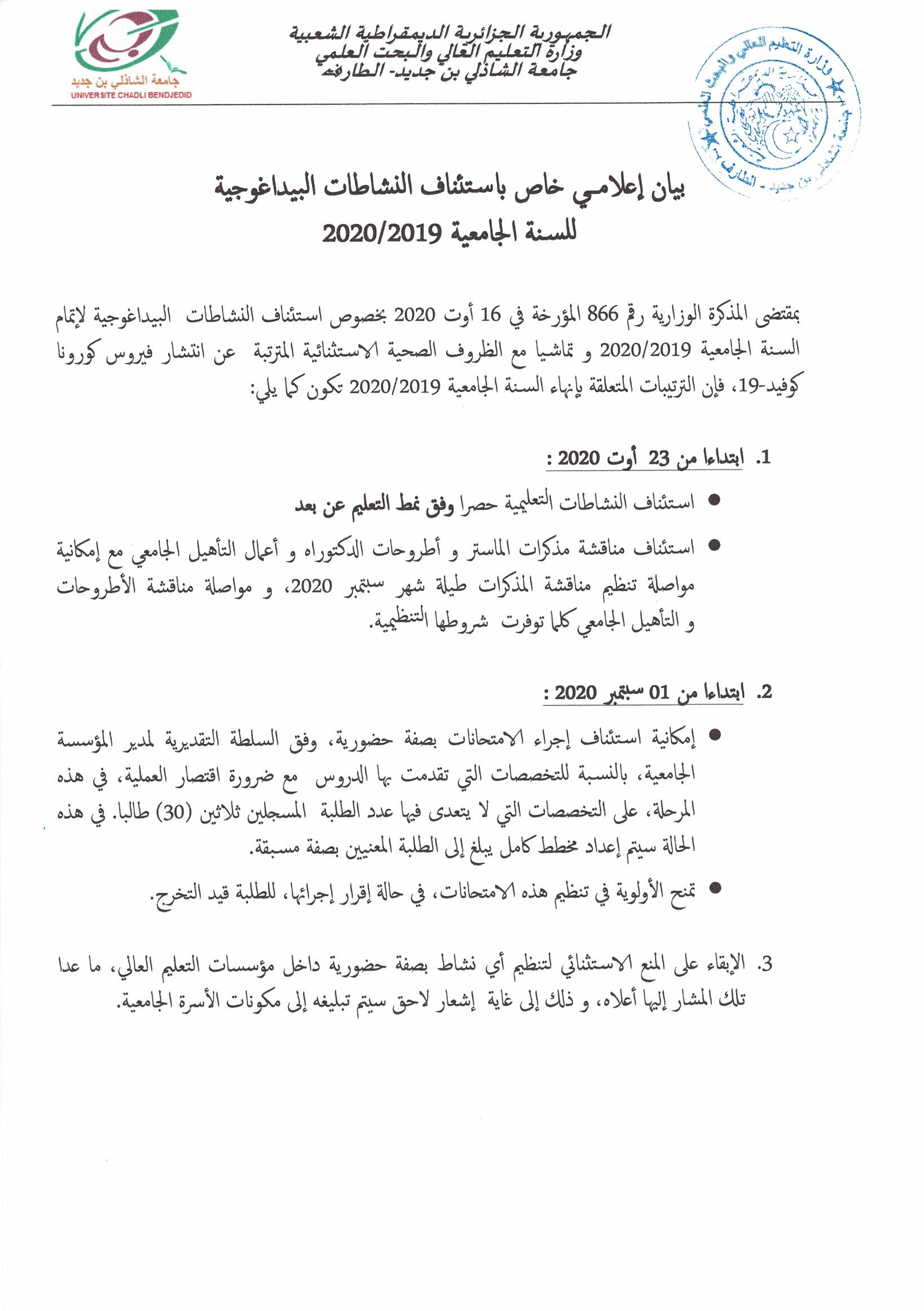 Circulaire n°03 du 07 Juillet 2019 fixant les conditions de soutenance d'une thèse de doctorat et ses modalités